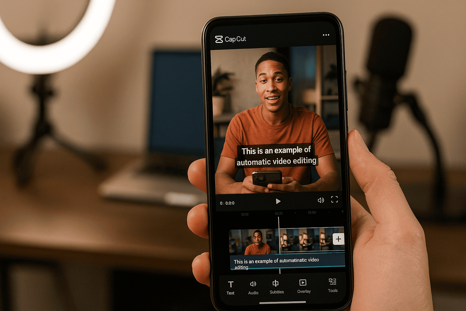 Editor de vídeo poderoso com inteligência artificial. Faz cortes automáticos, gera legendas automáticas, remove fundo, ajusta trilha, transforma texto em vídeo e muito mais — tudo direto no celular.